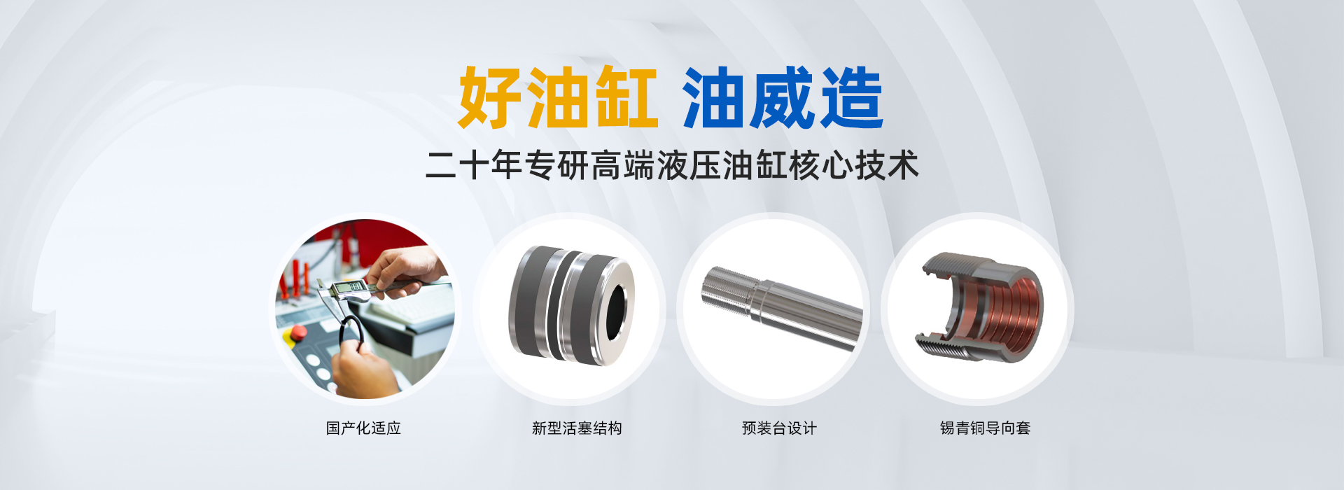 上海油威液压成套设备有限公司,(简称上海油威)于2005年成立于上海,是一家专注于液压油缸、伺服油缸、液压元件以及液压系统等产品的研发设计、生产制造、销售服务一体化的综合性企业。经过20年的发展积淀,上海油威全面掌握了高端液压油缸的核心技术并不断创新发展,其产品已进入先进制造、高端装备、进口产品替代等领域,在工程机械、能源冶金、交通运输、海洋工程、航空航天以及新能源等行业得到广泛应用, “好油缸油威造”已经成为行业应用同仁的共识。